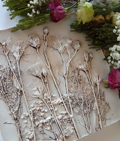 Attraverso la tecnica del bassorilievo imprimo a mano il tuo fiore preferito sulla creta.